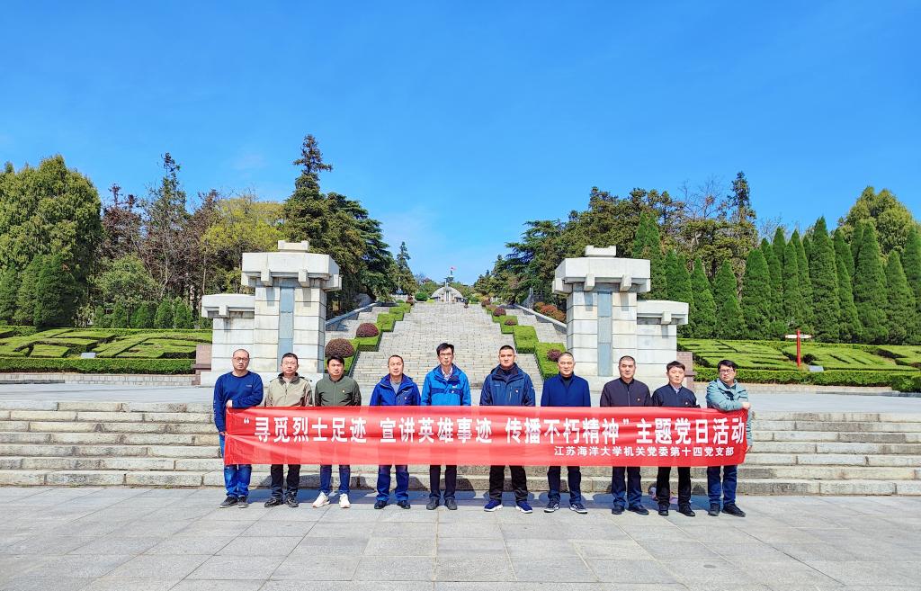 暮春时节,气清景明。为传承红色精神、强化党史教育、增强党组织的凝聚力和战斗力,时刻提醒党员不忘初心、牢记使命,发挥党员先锋模范作用,4月7日下午,机关第十四党支部全体党员胸前佩戴党徽、着装庄重得体,赴连云港抗日山烈士陵园及周边开展“寻觅烈士足迹 宣讲英雄事迹 传播不朽精神”主题党日活动。