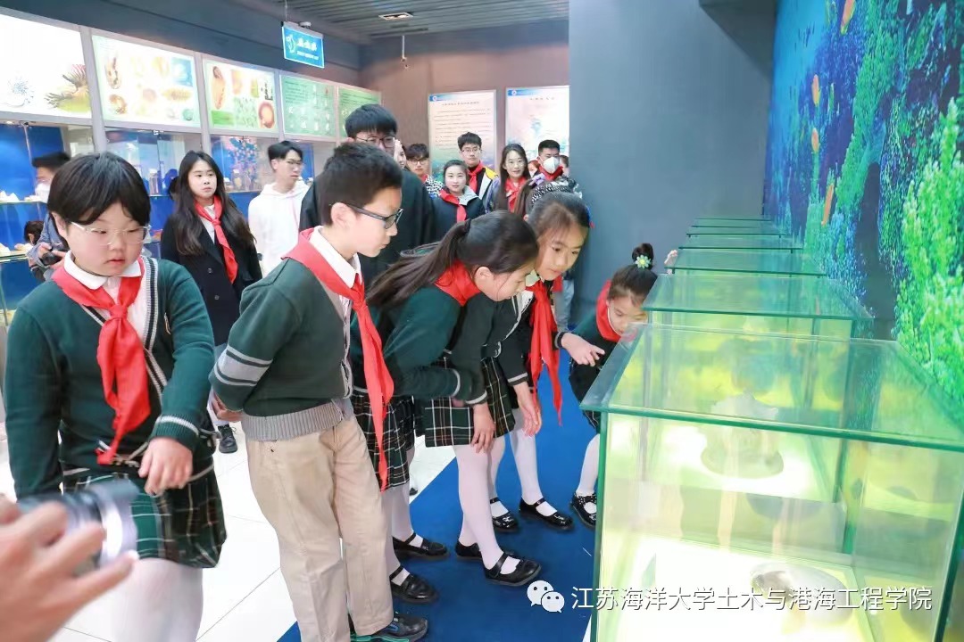 大学生党员们邀请少先队员前往江苏海洋大学海洋馆,由李士虎老师作为讲解员带领大家参观。在参观江苏海洋大学海洋馆过程中,同学们身临其境赞叹神奇多彩的海洋世界,海洋馆从建馆至今,共收藏各类海洋生物标本1000多种,从不同方面反映了我国海洋生物资源的多样性。