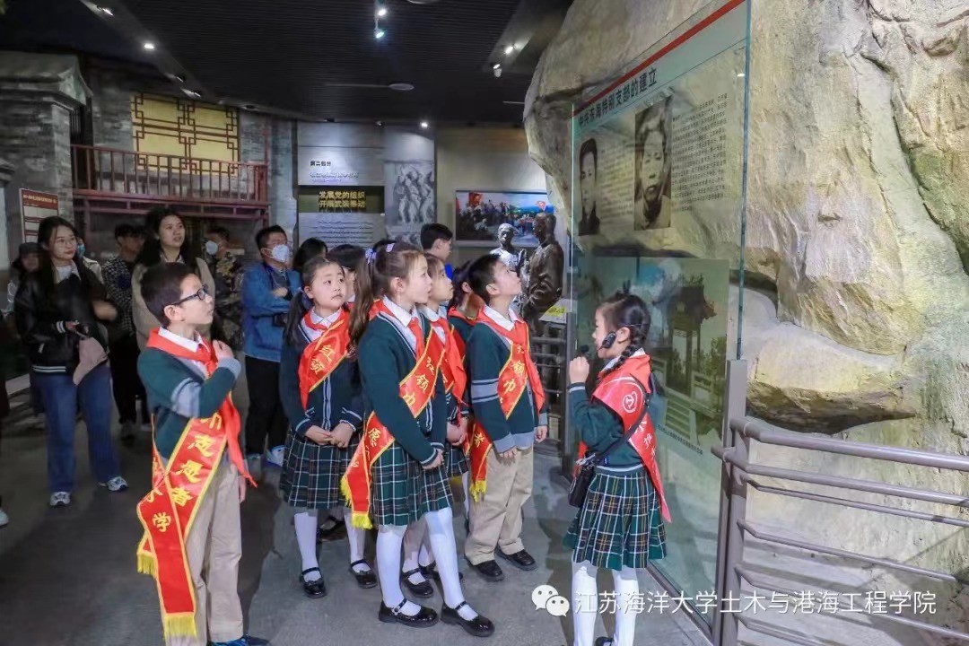 近日,江苏海洋大学土木与港海工程学院学生第二党支部与解放路小学红旗班少先队员进行共建活动。