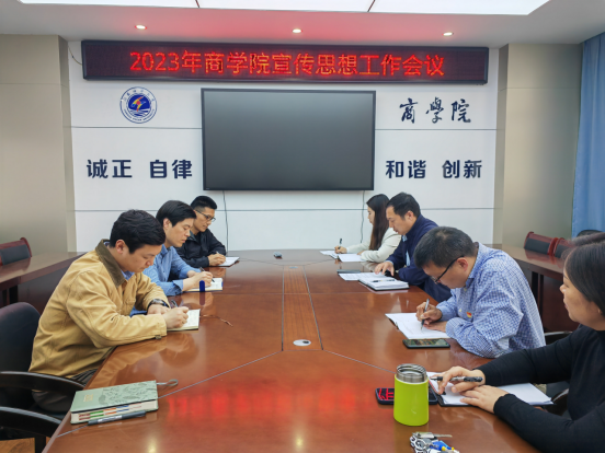 5月4日下午,商学院在文渊北楼355召开2023年度新闻宣传工作会议,会议由院党委书记万金店主持,各部门负责人及新闻宣传工作相关人员参加会议。