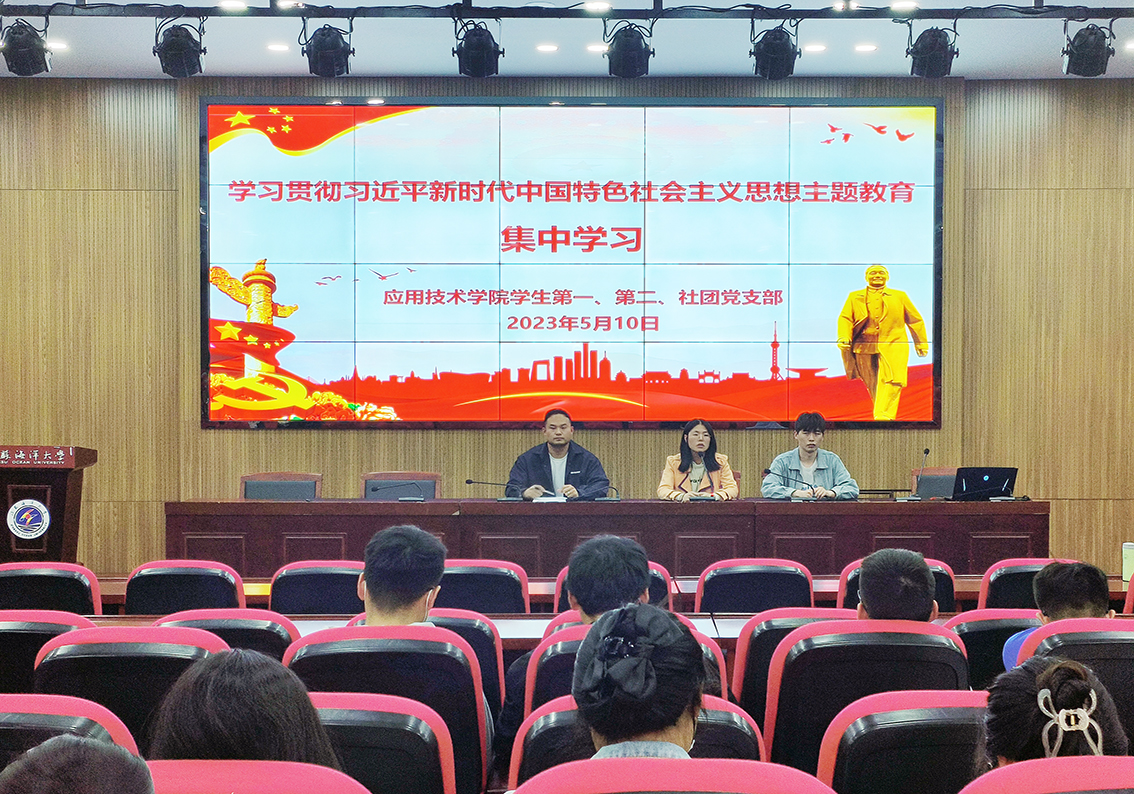 5月10日,应用技术学院学生党支部学习贯彻习近平新时代中国特色社会主义思想主题教育专题学习会在敦行楼报告厅举行,专题学习围绕“学思想、强党性、重实践、建新功”总要求,以“集中领学+个人自学”的形式开展,坚持支部书记带头学、原原本本学、全面系统学、联系实际学,带动学生党员深学细悟,推动主题教育走深、走实、走心。本次专题学习由学生社团党支部唐瑞锴领学,学生第一党支部、学生第二党支部、学生社团党支部全体党员参加了专题学习会。