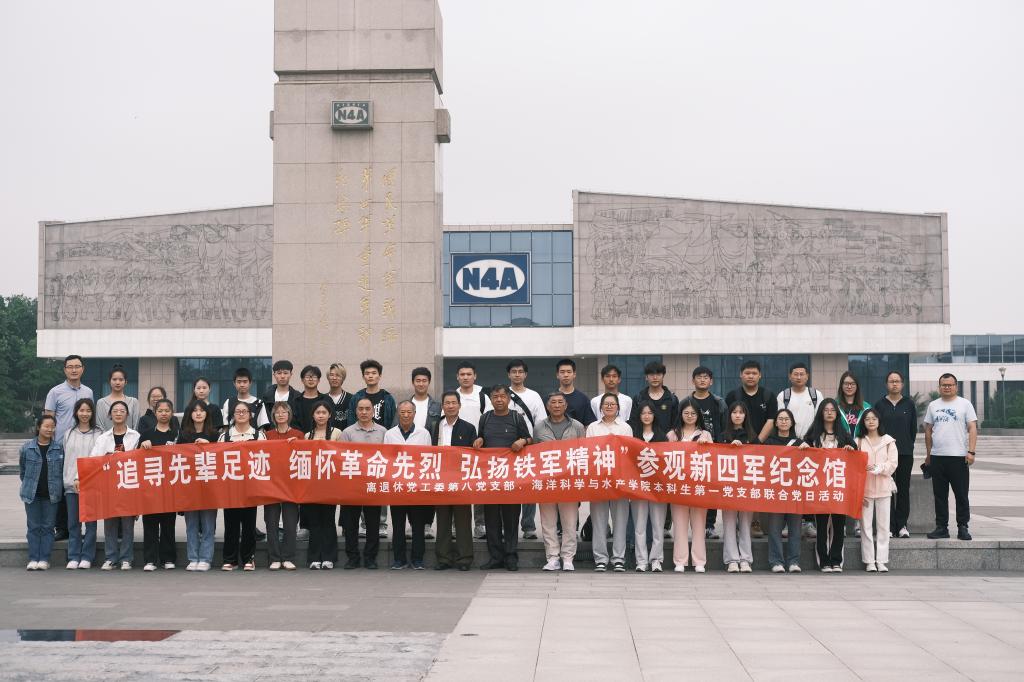 为加强思想政治引领,积极推进党史学习教育,深入学习宣传贯彻党的二十大精神,持续提升社会主义核心价值观教育质效,5月21日,离退休党工委第八党支部联合海洋科学与水产学院本科生第一党支部赴盐城开展“追寻先辈足迹·缅怀革命先烈·弘扬铁军精神”主题党日活动。离退休党工委副书记王祥义、离退休党工委第八党支部书记田克林,海洋科学与水产学院党委副书记朱小明、本科生第一党支部书记唐振新以及支部党员、入党积极分子代表及团学骨干参加此次活动。