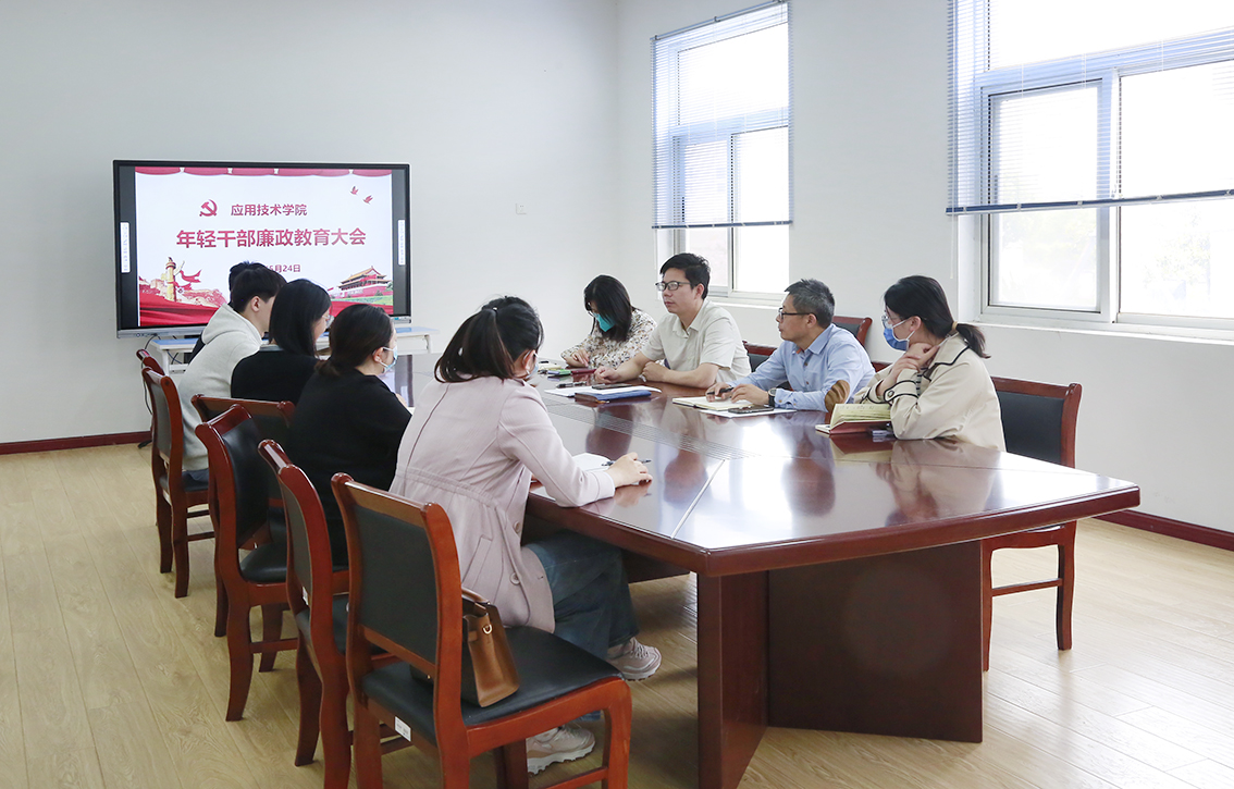 5月24日上午,应用技术学院在厚德楼206召开了年轻干部廉政教育大会。学院党委副书记时树奎主持会议,学院党委书记赵求勇以及年轻教职工参加会议。