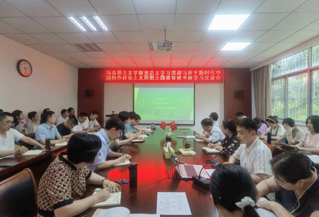 6月28日,马克思主义学院党总支举办学习贯彻习近平新时代中国特色社会主义思想主题教育读书班学习交流会,会议由党总支书记王波主持,全体教师参加了学习研讨。