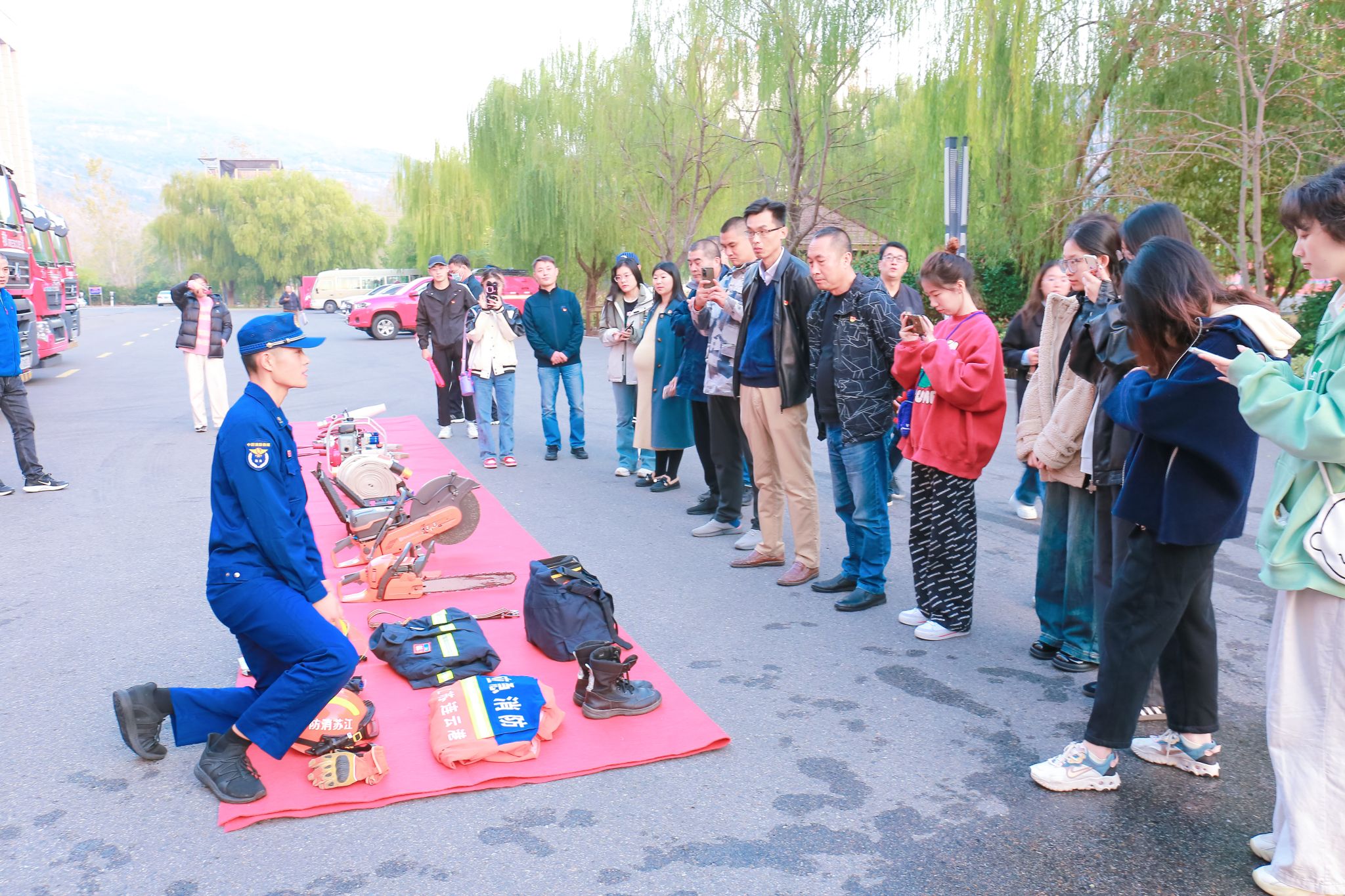 走出科技馆来到室外场地,一辆辆体现高科技实力的消防救援车和一件件消防器材整齐排列。消防官兵详细向大家讲解了消防救援车辆和装备的种类、功能、应用场景,党员们深入领略各项科技的实际应用,体验现代科技带来的震撼和便利,感受新时代科技强国带来的魅力和前景。
