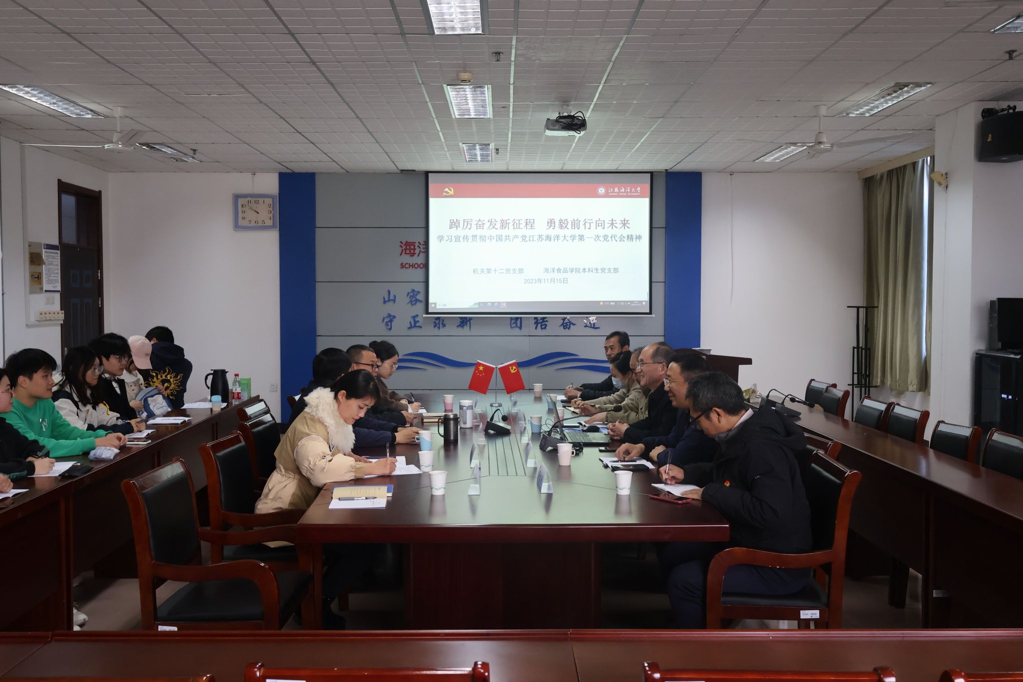 为深入学习宣传贯彻党的二十大精神和江苏海洋大学第一次党代会精神,加强党风廉政建设,教育引导广大师生党员增强纪律意识、规矩意识,11月15日下午,机关第十二党支部、海洋食品与生物工程学院本科生党支部联合开展“敬业奉献勇担当 清正廉洁铸忠诚”主题党日活动。