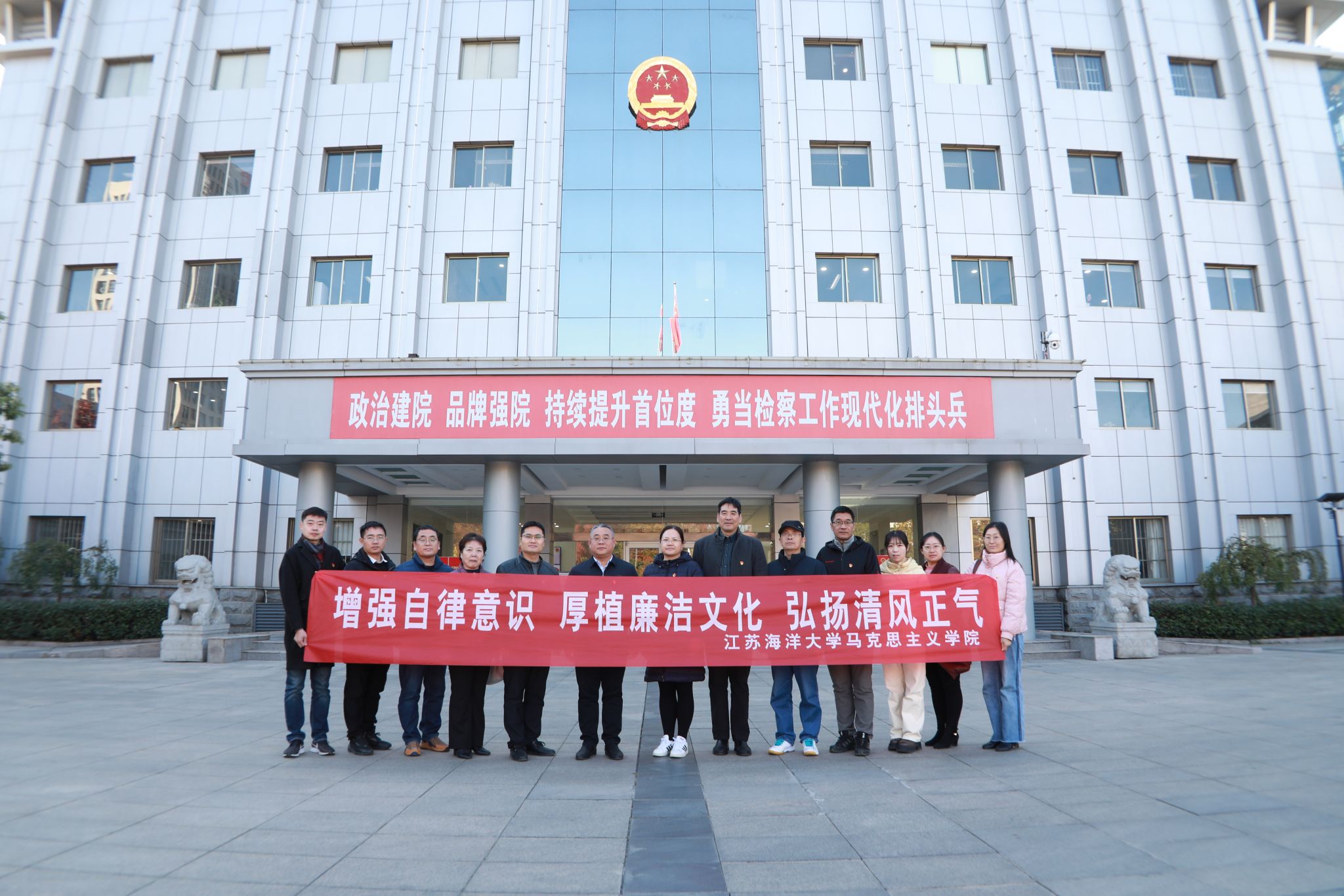 为深入学习贯彻习近平新时代中国特色社会主义思想和学校党代会精神,进一步加强党风廉政建设,引导党员干部切实增强廉洁自律意识,11月24日上午,马克思主义学院组织班子成员、教研室主任、党支部书记、科级干部赴海州区检察院习近平法治思想实践基地,开展了“增强自律意识 厚植廉洁文化 弘扬清风正气”廉政警示教育活动。