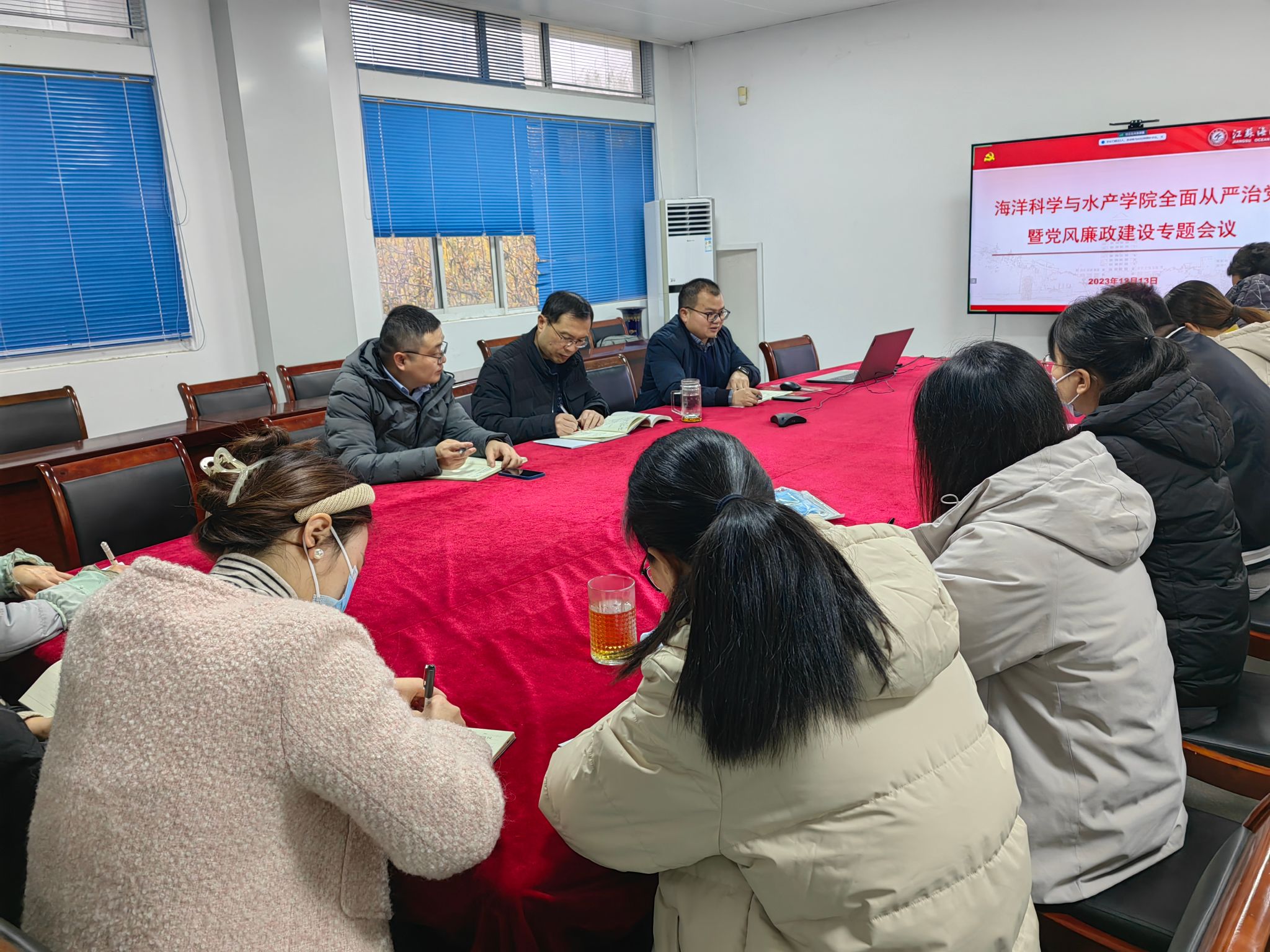 12月13日下午,海洋科学与水产学院在海洋南楼211会议室召开全面从严治党暨党风廉政建设专题会议,学院党政班子成员、院党委委员、各党支部书记、各系(实验中心、办公室、团委)负责人参加会议,会议由学院党委副书记朱小明主持。