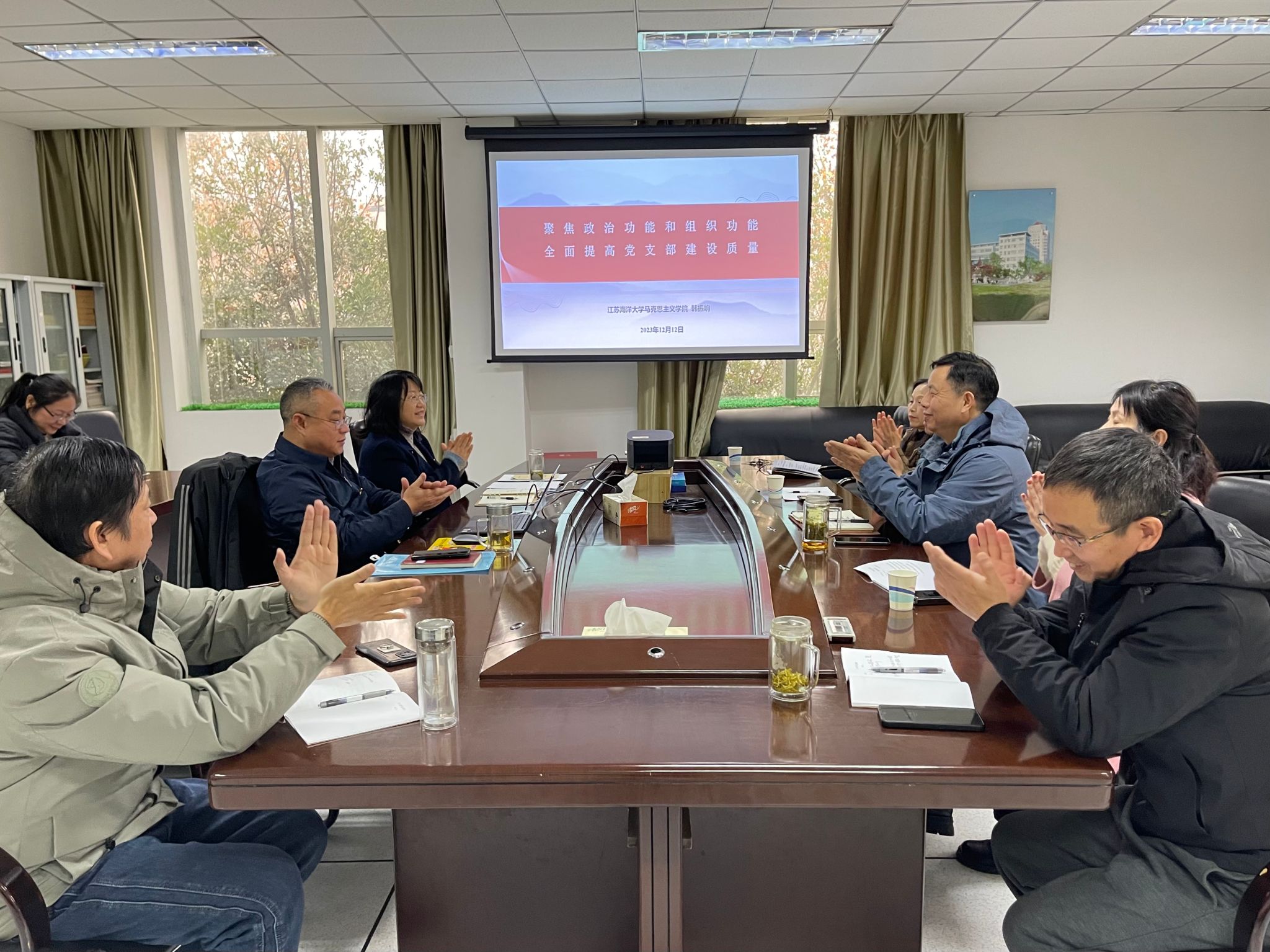 韩振响的党课题目为“聚焦政治功能和组织功能 全面提高党支部建设质量”。他首先对我校党支部建设现状进行介绍,接着结合实践工作,从坚持以《中国共产党支部工作条例(试行)》为基本遵循、聚焦党组织政治功能和组织功能、切实抓好六项重点工作等三方面,对如何做好高校党支部工作展开重点讲解。