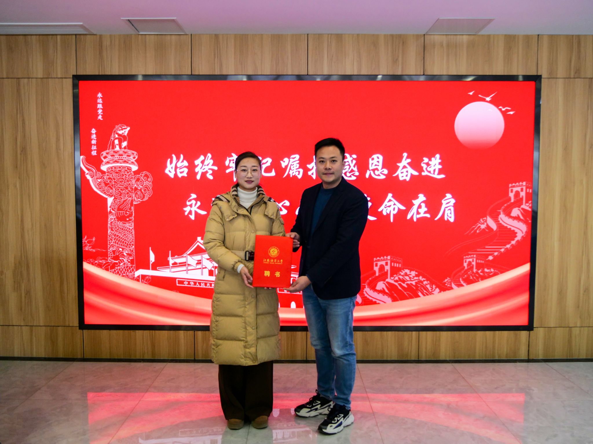 徐瑶以“扎根基层本色,淬炼青春沃土”为主题为青年师生带来一场精彩的微党课。她分享了自己10余年来返家乡创业的故事,寄语青年朋友要做眼中有光、肩上有责、手上有招、脚下有路的新时代好青年。微党课结束后,王衍为徐瑶颁发江苏海洋大学信仰公开课青年讲师聘书。