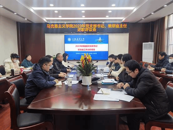 12月27日下午,马克思主义学院在学院会议室召开2023年度党支部书记、教研室主任述职评议会。机关相关职能部门负责人受邀担任评委,分别进行了评议。学院院长沈春梅及全体教职工参加述职评议会,学院党总支书记韩振响主持会议。