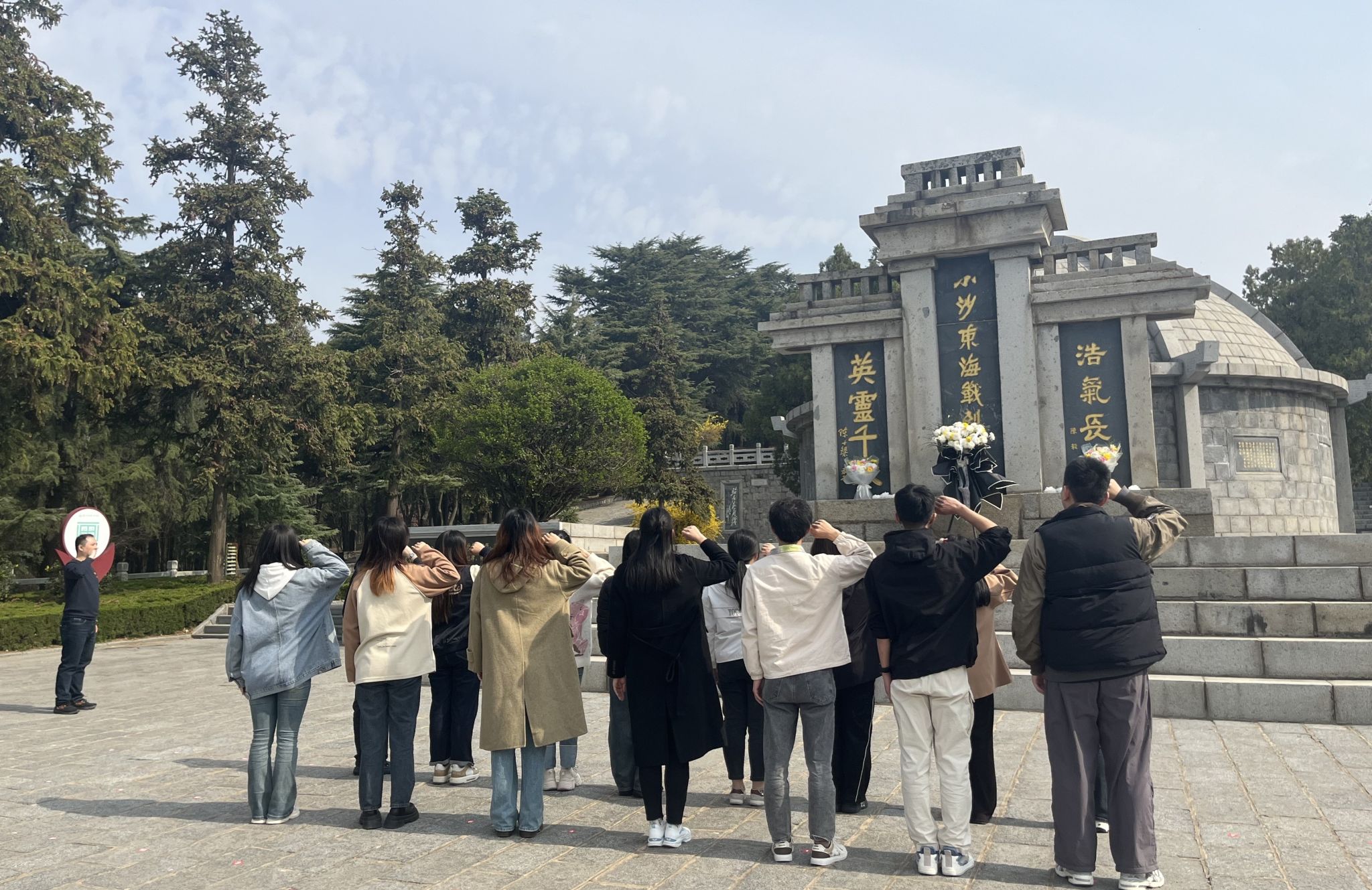4月3日,商学院前往灌云大伊山烈士陵园开展“缅怀先烈忆初心,挺膺担当再出发”清明祭扫活动。商学院党委副书记王智金,商学院关工委副主任老党员徐永其教授,学生支部书记谭鑫、周智超、杨舒翔,以及五十余名学生党员代表、团学组织骨干参与了本次活动。庄重的氛围中,研究生党支部副书记、学生代表陶音琦,离退休老党员徐永其教授作为师生代表发言。本科生团学组织骨干作“何以青春,青年当有为”主题朗诵,他们以深情的语言颂扬了革命烈士的英勇事迹和崇高精神,铿锵有力的誓言回响在纪念碑前,激励着在场的每一个人。师生共同参观革命烈士纪念馆。在讲解员的带领下,大家认真聆听革命先烈的英勇事迹,感受到他们不怕牺牲、英勇斗争的大无畏精神,激发了大家的爱国情怀和奋斗意志。全体人员移步至烈士墓园。大家在行礼默哀后擦拭墓碑,并献上鲜花,依次排队为墓碑描红,表达对烈士们的敬仰与怀念。