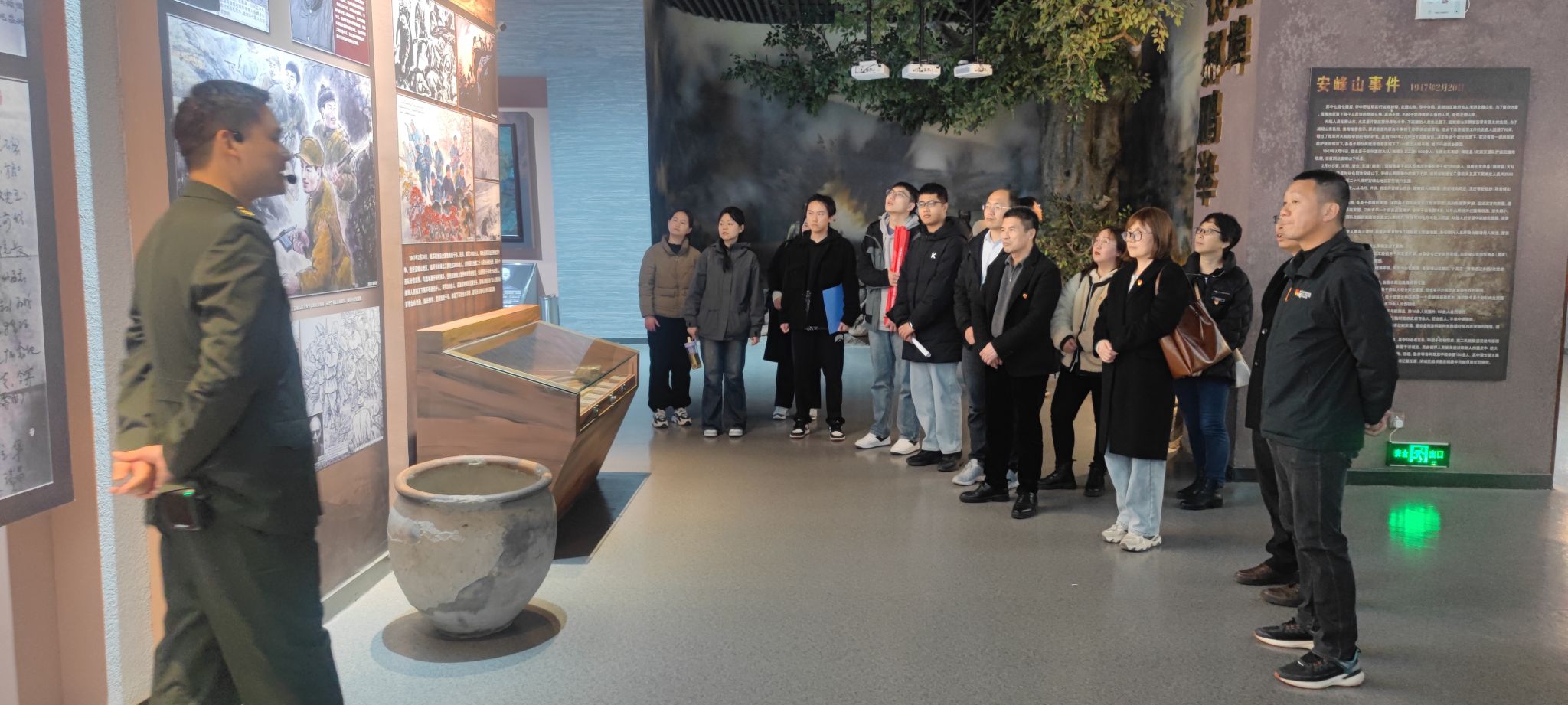 在庄严肃穆的安峰山事件烈士纪念塔前,全体师生肃立,手持鲜花,轻轻将其摆放在烈士墓前。每一朵鲜花都承载着对先烈们的崇高敬意和无尽缅怀。随后,党员们在烈士纪念塔前重温入党誓词,提醒自己不忘对党忠诚、服务人民的初心使命,树立学习革命先烈精神、发挥先锋模范作用的坚定决心。研究生会代表们对“安峰山事件”的历史和陈帅烈士的英勇事迹进行了生动的讲解,革命先烈们不畏艰险、砥砺奋进的精神,深深激励着现场全体师生。在东海县革命烈士纪念馆内,师生们认真倾听讲解员的讲解,仔细观看各展厅的文字介绍、图片、影像和珍贵实物,深入了解了东海人民在党的领导下进行革命斗争,经过艰苦奋斗取得伟大胜利的历史进程。