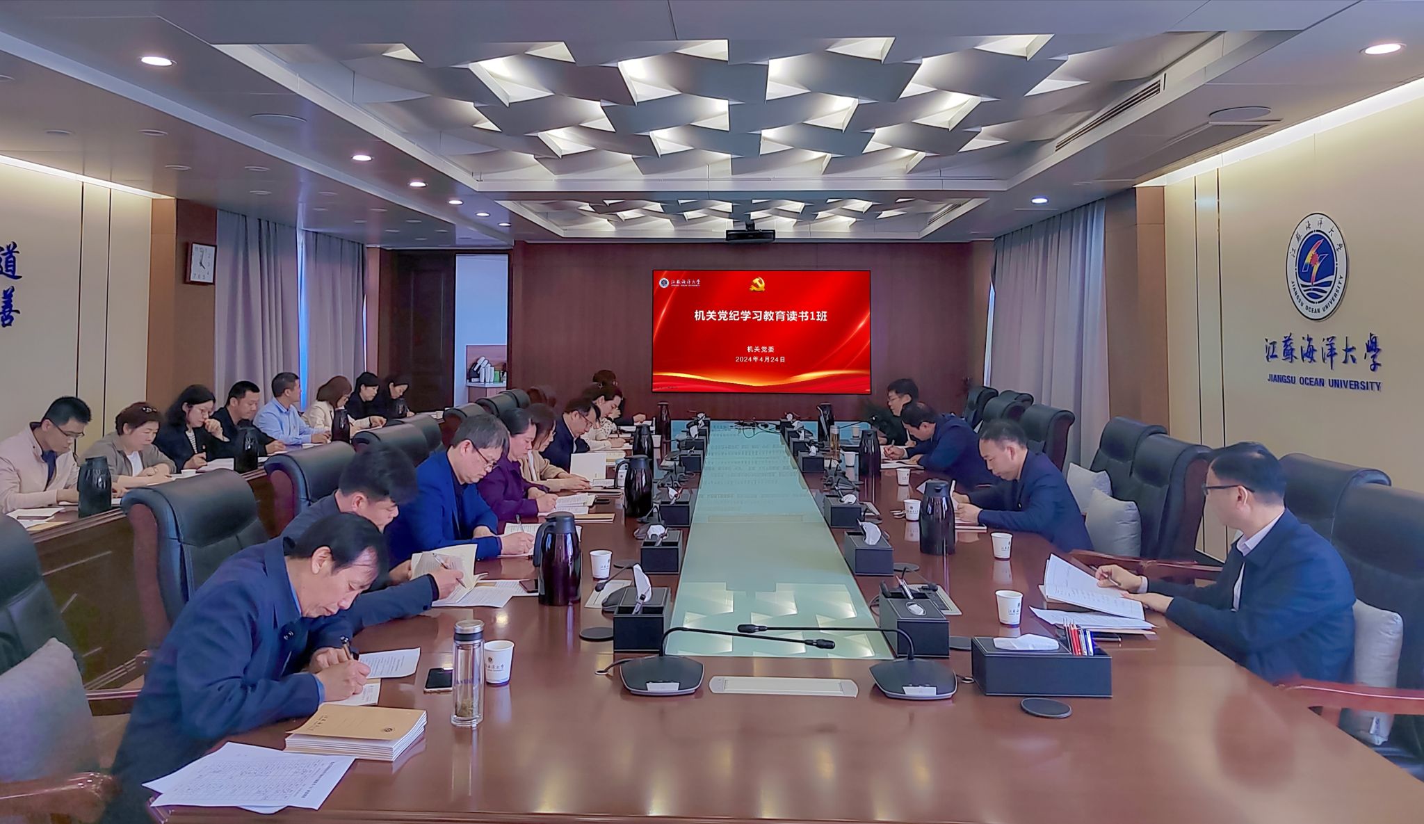 按照学校党委统一部署,经过周密准备,机关党纪学习教育专题读书班于4月24日下午在行政楼五楼会议室开班,机关党委书记汪守建主持机关党纪学习教育专题读书1班的学习。