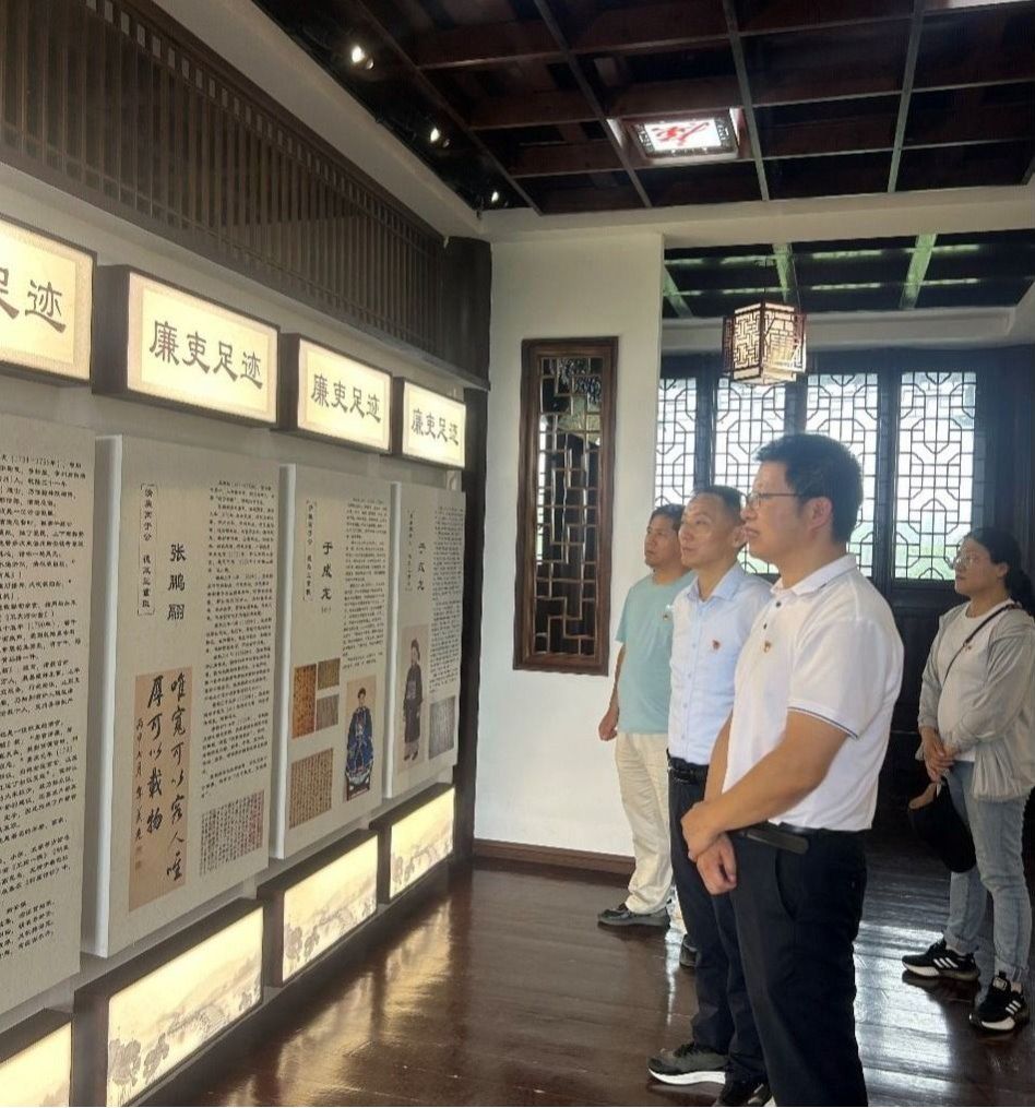 第一站是灌南县孝廉文化教育基地——二郎神孝廉文化馆,同志们在慈孝阁清风馆的廉吏足迹展板前,认真观看古代廉吏廉洁奉公、勤政为民事迹:有杨锡绂的自律严谨;有管干贞的勤政廉政;有于成龙的临危受命,心怀黎民。孝子、贤臣、廉吏的历史形象,使全体党员在潜移默化中感受孝廉理念,接受教育熏陶,为党员干部自警自省提供镜鉴。