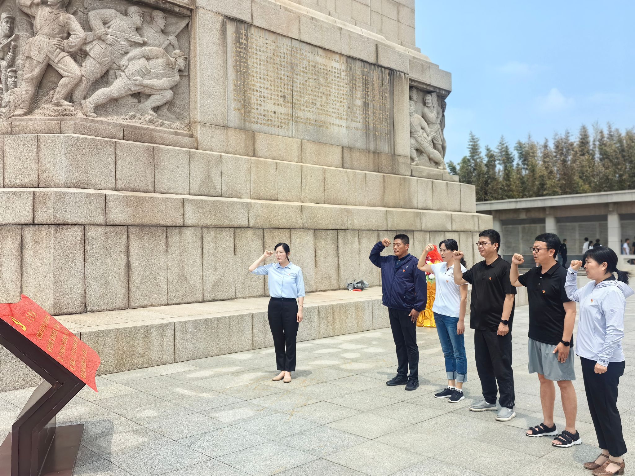 在淮海战役纪念塔前,由学院党总支副书记李淑华领誓,大家高举右拳重温了入党誓词。接着大家又瞻仰了淮海战役烈士纪念塔周围的塔下连廊里“淮海战役烈士英名录”。