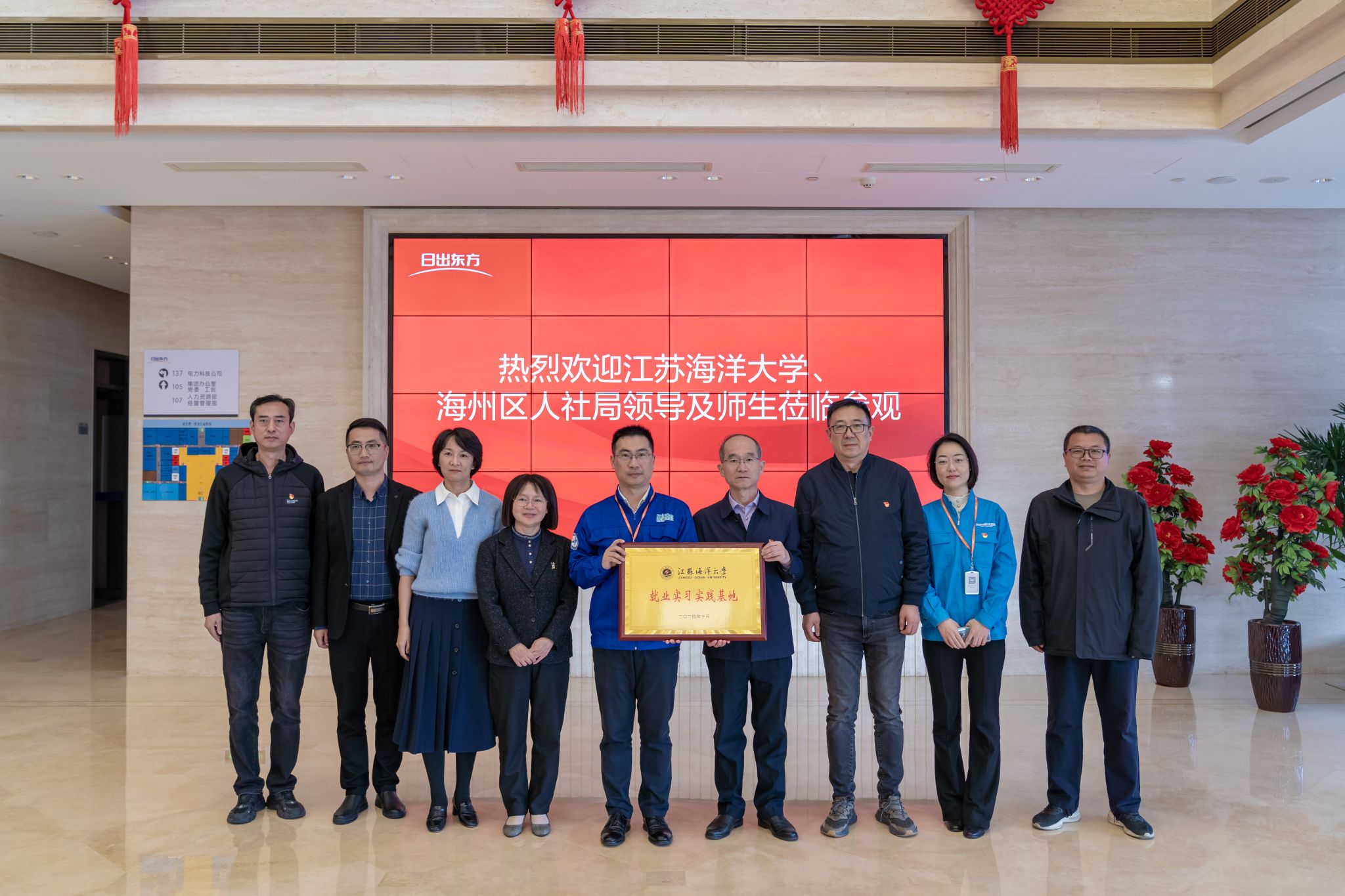 为深入贯彻落实党的二十届三中全会精神,以务实举措扎实推进学生高质量就业,10月25日下午,机关招就处党支部、海洋食品与生物工程学院本科生党支部组织35名学生代表赴日出东方、鹰游纺机、小瓜科技等3家海州区代表性企业参访交流,联合开展“贯彻落实党的二十届三中全会精神,访企拓岗架桥梁,精准对接促就业”主题党日活动。海州区人社局党组书记、局长董志红、机关招就处党支部书记马恒通、海洋食品与生物工程学院党委副书记郭利、招生与就业处副处长骆海宏以及支部党员参加本次活动。通过这次行动,进一步深化了校政企合作,有效汇聚了社会各方资源,拓展了优质就业实习实践基地,促进了人才供需的精准对接。