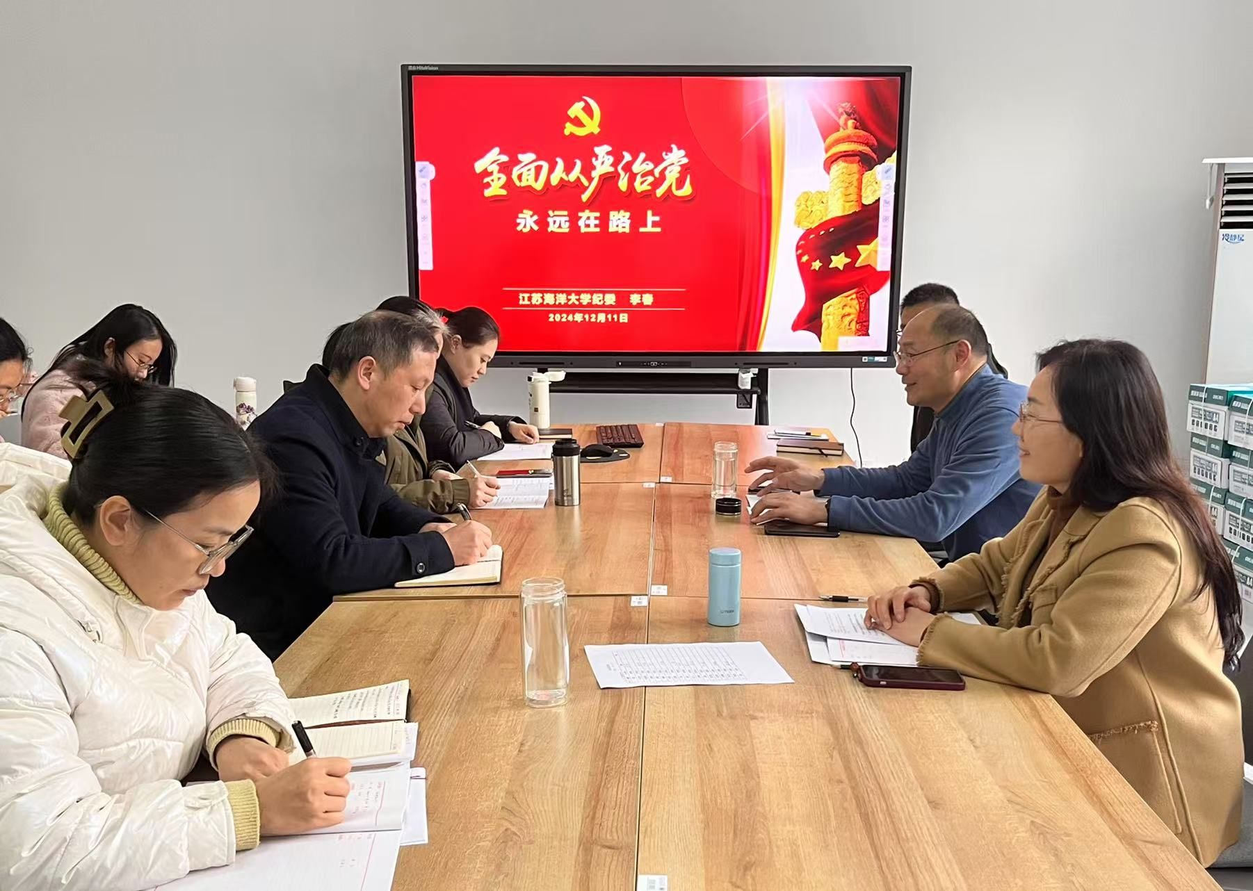 李春分享题为“全面从严治党永远在路上”的专题党课,从认清一以贯之坚定不移全面从严治党到剖析高校违规违纪违法典型案例,并对中共江苏海洋大学委员会《关于建立“1+5+N”监督体系及工作机制的若干规定》进行了深入解读,以案说纪,系统阐释了全面从严治党的深刻内涵,同时结合学校党委巡察发现的共性问题与潜在风险,强调财务应进一步健全科研经费、专项资金管理机制,定期进行专项检查,发现问题及时整改,实行全过程监督,确保经费使用透明、规范。
