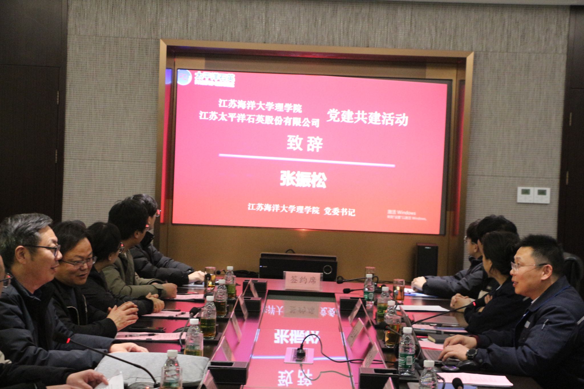 本次产学研系列活动由太平洋石英光电科技产业学院副院长黄增光主持,活动伊始,党建联建对接单位理学院党委与太平洋石英股份有限公司党支部举行了党建共建签约以及产业学院实践基地签约仪式。