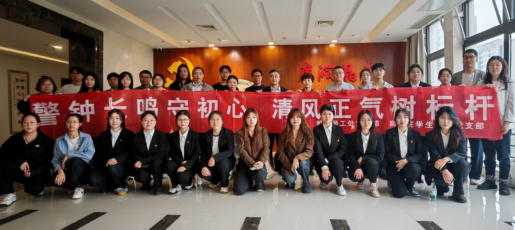 为深入贯彻全面从严治党要求,推动党纪学习走深走实,进一步增强党员干部的廉洁自律意识,5月7日,机关学工处党支部和商学院学生第三党支部前往东海县“廉润晶都”警示教育基地,联合开展“警钟长鸣守初心 清风正气树标杆”主题党日活动。