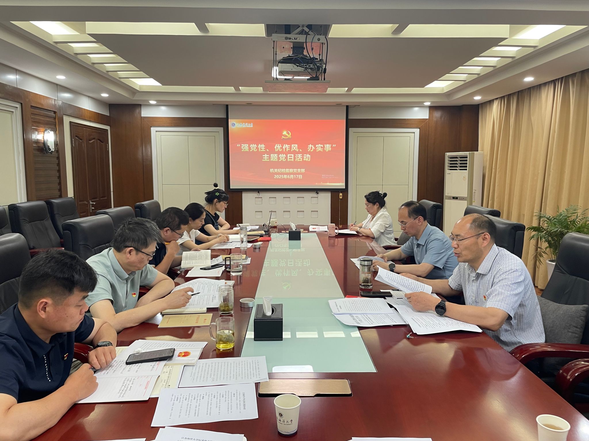 6月17日上午,机关纪检监察党支部开展“强党性、优作风、办实事”主题党日活动,支部全体党员参加。纪委书记徐双俊对纪检监察干部提出明确要求,一是要加强纪检监察机关组织建设,充分发挥纪检监察党支部的战斗堡垒作用和全体党员的先锋模范作用;二是要提升统筹规划能力,抓住工作的主要矛盾和矛盾的主要方面;三是纪检监察干部要强化业务能力,既要有斗争精神又要有斗争艺术;四是要加强作风建设,打造纪检监察铁军。