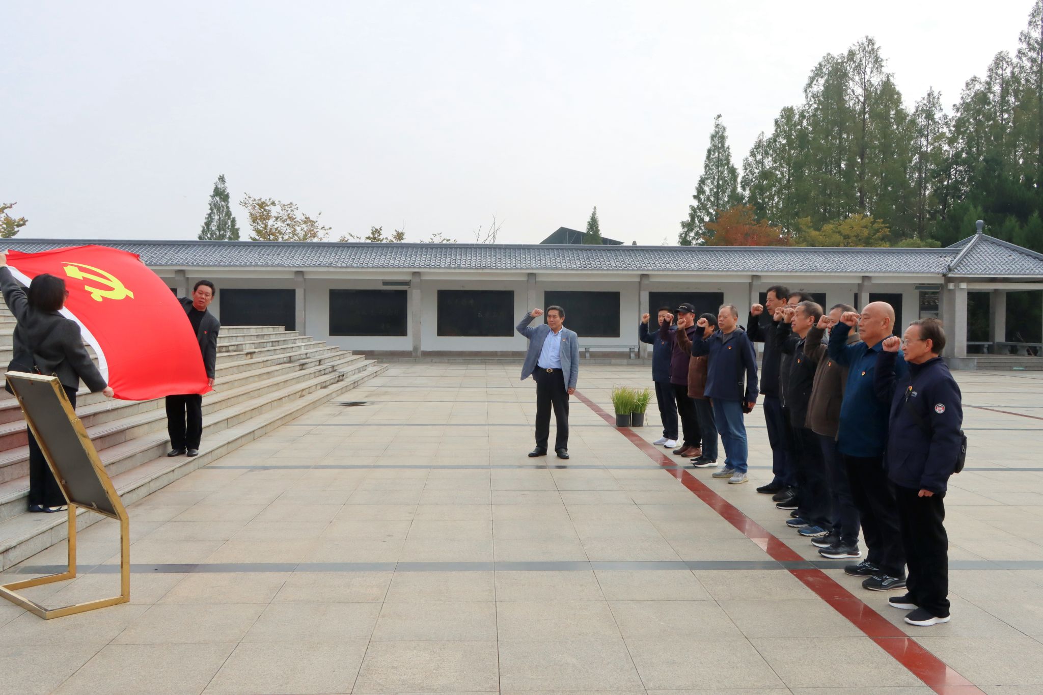 走出纪念馆,远远望去,八十二烈士纪念碑如同两支钢枪直指蓝天,象征着革命先烈不畏强敌、誓死保家卫国的坚定信念。老党员们在纪念碑前广场肃穆列队,面向鲜红的党旗庄严宣誓。在历史墓碑前祭奠,全体党员鞠躬缅怀,表达对先烈们的崇高敬意和无限哀思。学习教育过程中,大家叩问初心使命,砥砺奋斗决心,表示要力所能及的发挥作用,弘扬主旋律,增添正能量,关心青年学生成长成才,助力学校各项事业高质量发展。