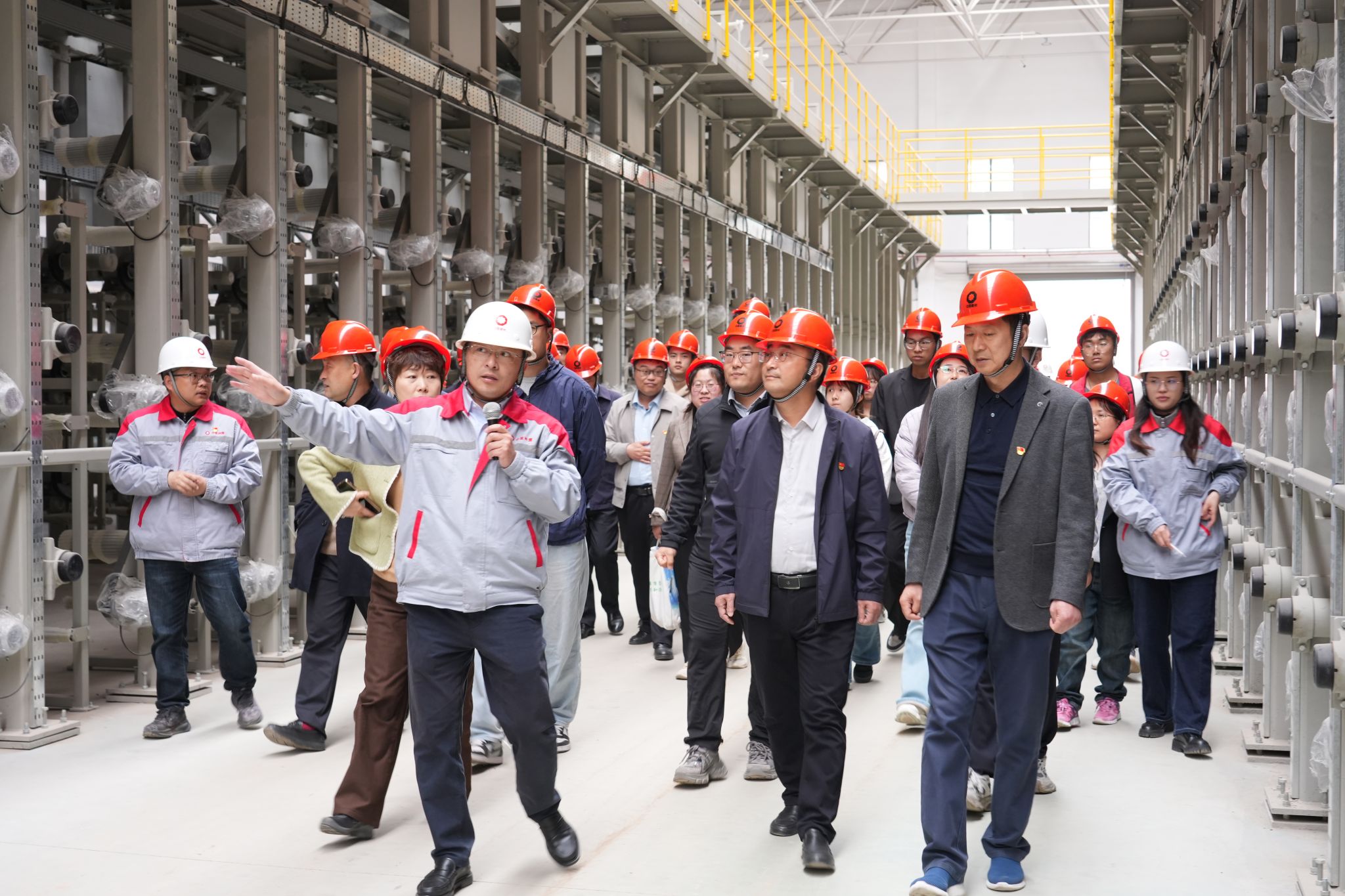 党员代表实地参观了中复神鹰碳纤维连云港有限公司生产基地。在建设现场,通过项目规划展板、碳纤维生产制造流程介绍等形式,参观人员详细了解了基地的建设背景、技术定位与绿色化、高端化、数智化的战略布局,对项目建成后在高性能碳纤维领域的创新突破和行业价值有了更深层次的理解,也为后续双方以党建为引领,开展人才联合培养、技术研发协同等校企合作奠定了坚实的基础。